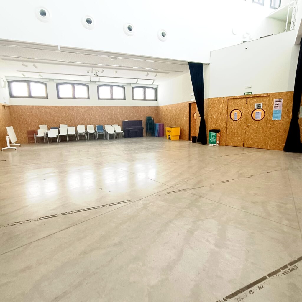 La sala Dià fana o Teatre és l’espai més gran del Mercat. Té forma irregular amb 3 espais contigus i està aïllada acústicament. Es pot dividir amb cortines (sense aïllament entre ales). Ideal per a concerts, assajos, projeccions, xerrades o grups grans.
